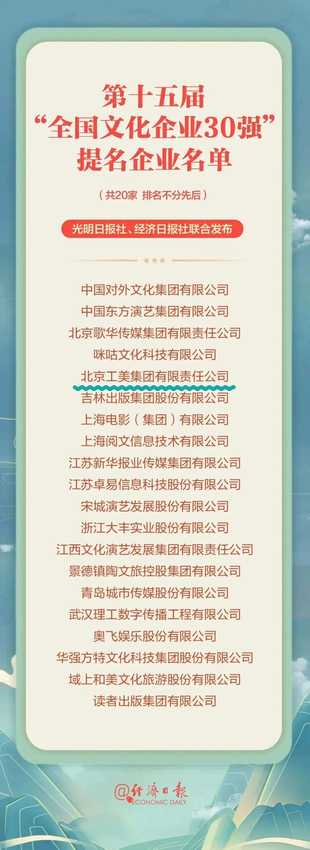 (第十五届“全国文化企业30强”名单源自经济日报)